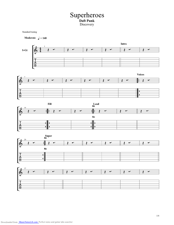 Superheroes Guitar Pro Tab By Daft Punk Musicnoteslib Com