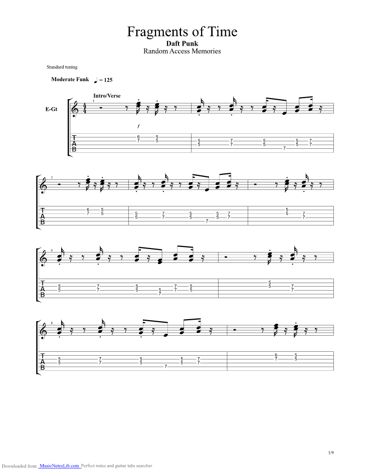 Fragments Of Time Guitar Pro Tab By Daft Punk Musicnoteslib Com